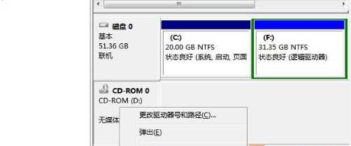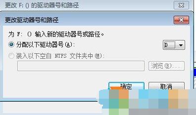 4、将光驱盘符更改完成后,我们再按第3步操作 把F盘更改为“D盘”,为什么要先更改光驱盘符呢?因为之前D盘是给光驱占用了,我们要先空闲出来才能为别的磁盘分配“D盘”,要不然在更改的时候是不会出现“D”选项的。