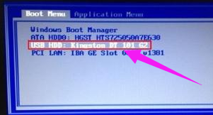 6。插入创建的USB驱动器启动磁盘,重新启动并按下F12或FN+F12以调用启动管理对话框,选择USB HDD以识别USB驱动器并启动并输入PE,然后按Enter;