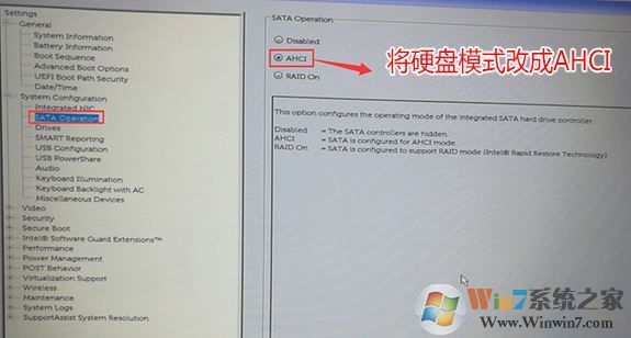 5。注意:切换到系统配置项目。如果严格的磁盘模式是突袭的,请将SATA操作硬盘模式更改为AHCI模式。否则,安装Win7将显示0x000007b蓝屏。更改后,选择退出并保存BIOS,如下图所示;
