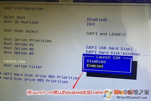 3。然后将启动CSM设置为启用,启用兼容模式,如下图所示,然后将设置保存在F4中;