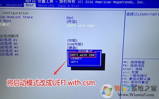微星PE62 7RD预装win10怎么改win7步骤二:BIOS修改与U盘启动1。按下DEL在启用电源时输入BIOS接口,然后使用箭头键向上,向下,向下,向左和向右选择选项启动模式(启动模式选择),将UEFI用CSM更改为UEFI,如下图所示;