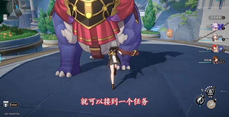 关键互动操作触发任务后立即遵循目标跟踪指南。建议切换到运动速度更快的角色。在安慰地球野兽的阶段,请注意交互式钥匙的扳机范围。每次对话完成后,机械野兽将重新开始运行,需要预测其运动轨迹以提前站立。情节触发点的最后部分位于Ohma City主要大门的右侧,靠近传送锚点的石头台阶。