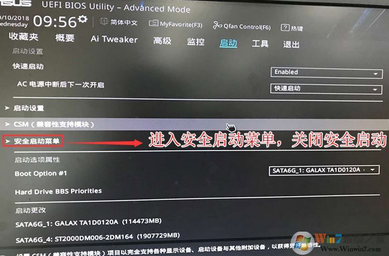 华硕Z270主板安装win7步骤二:BIOS修改与U盘启动1。重新启动笔记本,然后按ESC或F8进入BIOS设置,将BIOS更改为简化中文,然后按F7进入高级模式,如下图所示;