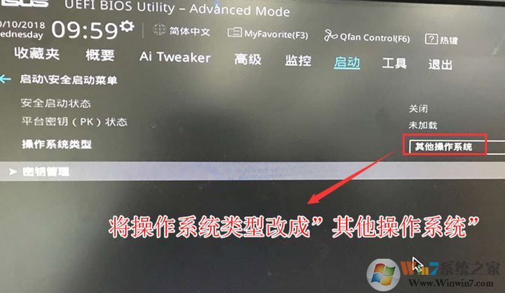 3。返回“安全开始菜单”的选项,然后将操作系统类型更改为“其他操作系统”,如下图所示;