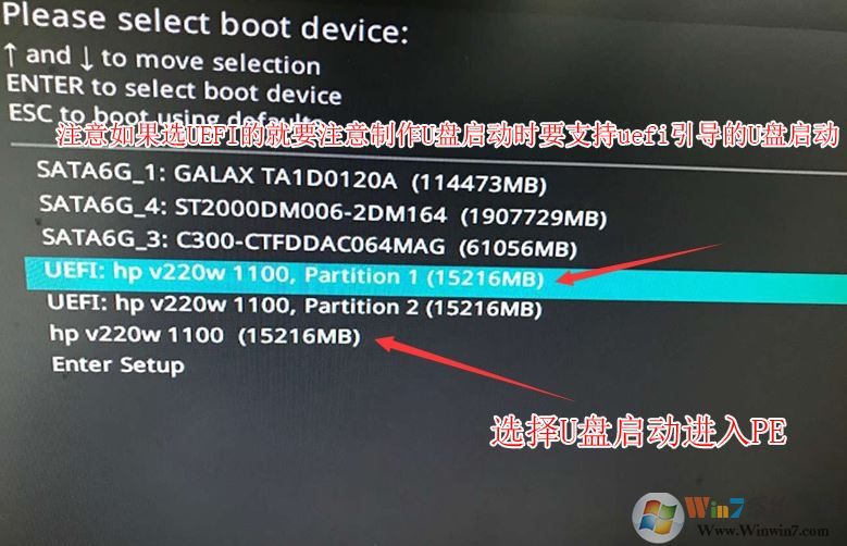 6。插入U磁盘启动磁盘,重新启动并按ESC选择以识别U磁盘启动项目,然后按Enter;