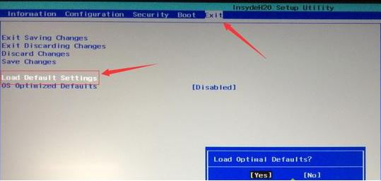 3。选择加载默认设置输入加载设置。加载默认设置后,某些模型需要按F10保存并重新启动,然后按F2输入BIOS以继续以下设置,如下图所示;