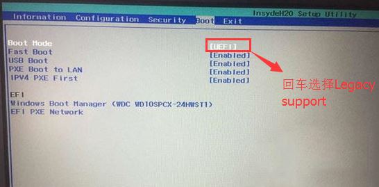 4。切换到启动和更改启动模式从UEFI转换为传统支持;