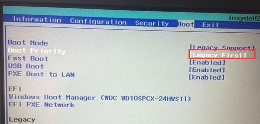 5。然后将启动优先级设置为Legacy,然后按F10选择“是要输入”;