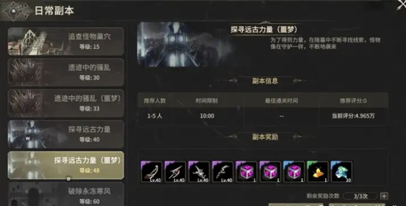 每日必须运行的任务可以达到稳定的体验点,而奖励任务是材料的主要来源。建议将这两个项目包括在每日必须做的列表中。还应及时参加限时活动,例如血塔和恶魔广场。这些游戏玩法具有产生稀有道具的概率。