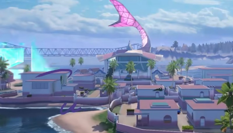 关于海豚岛地图最引人注目的事情是粉红色和蓝色主市区的设计。位于农场区域下方的地图分为两个对称区域:粉红色的海豚岛和蓝色海豚岛。视觉效果不仅是新鲜和明亮的,还提供了一个新的战术选择空间。这两个主要城市地区都配备了完整的建筑综合体和资源点,使玩家可以在享受夏季风格的同时进行激烈的战斗。