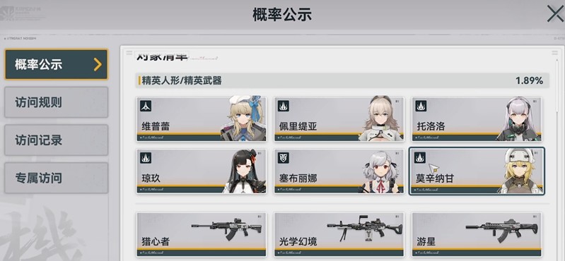 女孩前2的纸牌绘图系统分为两个质量水平:精英和标准。精英类人形或武器的全面运输率为1.89,概率包括保证机制的影响。实际上,精英质量的基本概率仅为0.6。如果将其细分为人物和武器,则每个项目的具体可能性约为0.3。这意味着很难单平局获得精英质量。