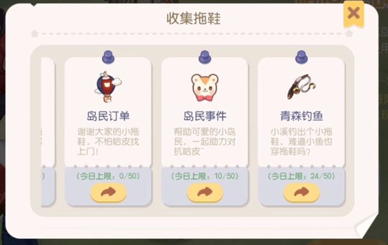 完成各种交货订单也是获取拖鞋的重要方法。在梦境的欧比岛(Obi Island),玩家可以收到各种交付任务。成功完成后,除了定期奖励外,他们还将收到其他拖鞋作为礼物。居民还将为居民委托的任务奖励拖鞋,玩家可以根据自己的喜好选择任务类型。