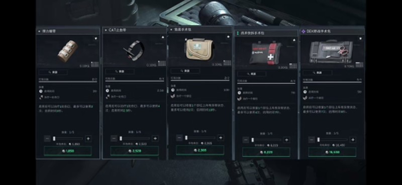 对于特殊伤害,该游戏提供了止血带和外科套件等专业医疗道具。止血带可以迅速停止轻度出血并避免持续不断的健康状况。手术套件可以处理严重的伤害,例如骨折。与简单的手术套件相比,现场手术套件的使用时间较短,在实际战斗中更实用。缓解疼痛药物可以暂时缓解疼痛的负面影响。
