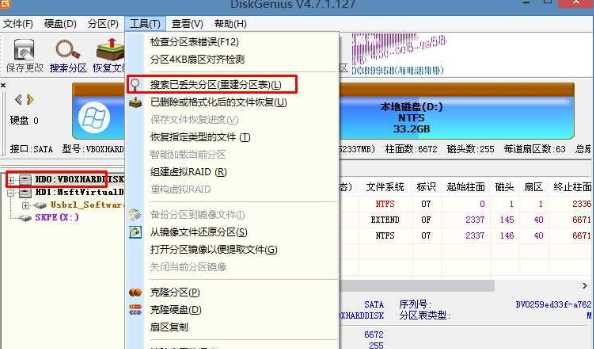 2。打开磁盘工具后,选择硬盘,然后单击上面的“工具” ——以搜索丢失的分区(重建分区表);