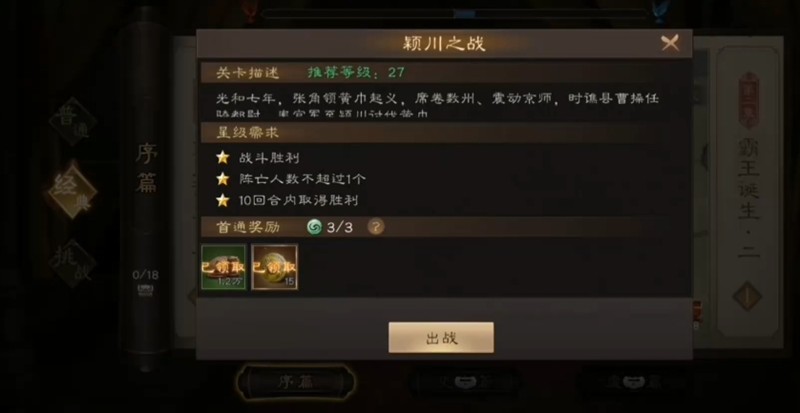 传记模式的新版本分为三种类型:普通,经典和挑战。正常模式使玩家可以使用在日常生活中训练的将军进行策略,这适用于想要轻松体验情节的玩家。经典模式需要使用系统提供的固定将军和水平来完成挑战。每个级别都有三星级任务和3个成就,并且需要仔细规划策略才能完美地通过。