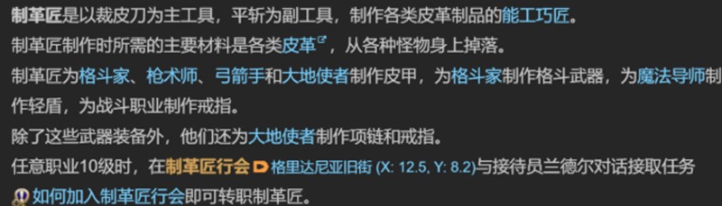 要成为制革商,您需要首先达到10级角色级别。然后他去了格莱达尼亚旧街的晒黑协会,发现NPC Randall接管了转会任务。完成相关任务后,您可以正式成为制革厂。转移后,该系统将为新手制造商提供手册,该新手包含主要食谱。建议优先考虑这些食谱。您不仅可以熟悉该操作,还可以获得额外的经验奖励。