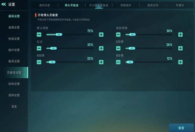 在远光灯84游戏设置中,玩家可以找到六个不同的灵敏度调整选项。其中最重要的是两个选择:镜头灵敏度和射击镜头灵敏度。透镜灵敏度控制非战斗状态下透视角的旋转速度。建议对该值进行适当调整,以促进对周围环境的快速观察。射击镜头的敏感性与射击过程中视线的稳定性有关。建议降低该值,以避免视线过度摇晃并影响目标。
