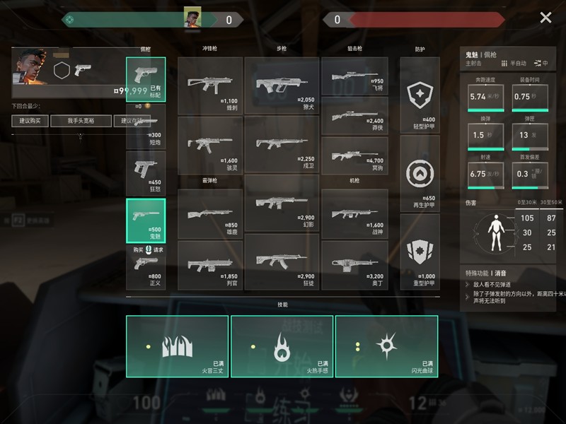 30米内的幽灵的伤害为:爆头105分,体内30分,腿部25分。距离超过30米后,损坏将减少,头部射击87点,体内25分,腿部21点。该武器的弹道偏移为0.3,这意味着,当针对头部的距离约50米时,命中率将大大下降。因此,幽灵更适合在中距离和长距离发挥其优势。