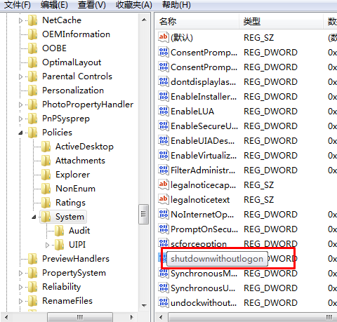 3。然后查找并双击窗口右侧的“ shutdownWithWithOutlogon”项目,然后将其值更改为1。