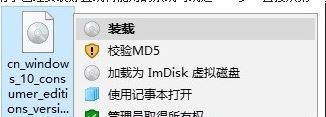 6、找到你下载的cn_windows_10_consumer_editions_version_1903_x64_dvd_8f05241d.iso文件,右键装载或者直接双击该文件即可快速挂载为虚拟光驱。