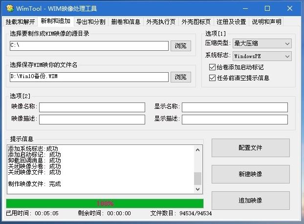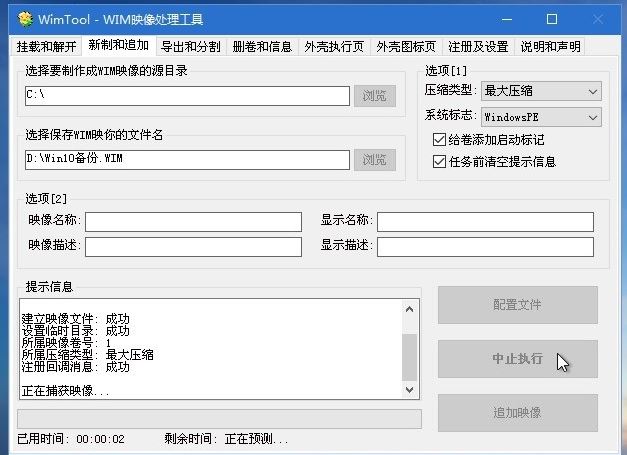 17、请耐心等待WIM映像打包封装完毕,此步所需时间视电脑配置高低而定。