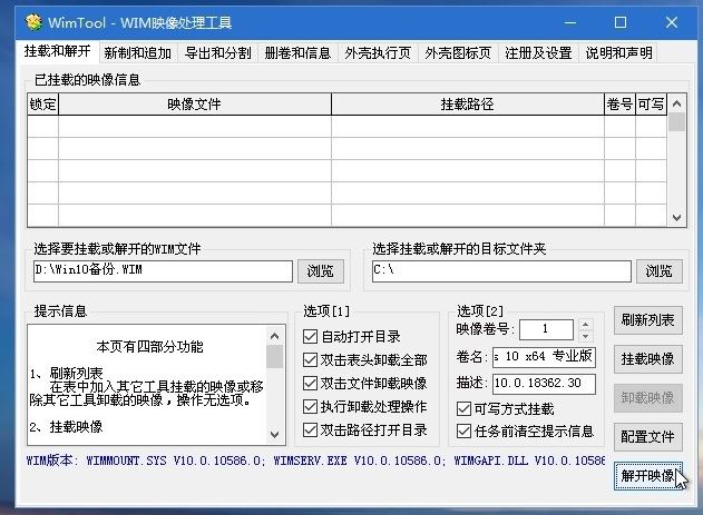 这里以使用WimTool为例,对于处理WIM/ESD文件也可以使用Dism或Dism++等工具完成操作。