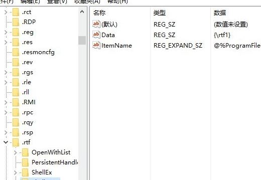 2、Win+R后输入regedit,定位到主键:HKEY_CLASS_ROOT\.rtf
