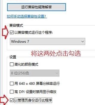 2、鼠标右键单击PS图标,点击选择菜单中“属性”,在PS属性对话框,点击切换到“兼容性”选项卡,点击勾选“以兼容模式运行这个程序”(建议选择Windows 7),然后点击勾选下面的“以管理员身份运行此程序”后,点击底部“确定”,如图: