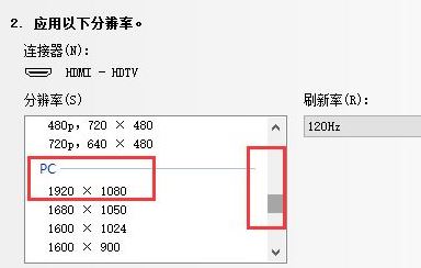 5、下拉 选择PC 推荐分辨率 设置为144HZ,如图: