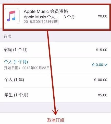 5、选择我们要取消续费的功能并点击取消订阅即可,小编以自带的音乐为例!