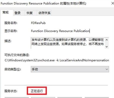 7、在服务界面找到“FunctionDiscoveryResourcePublication”服务,双击打开将该服务启动;