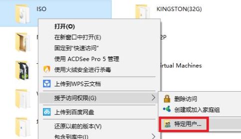 8、接着在在要共享的文件夹上右键,选择授予访问权限-特定用户...;