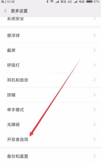 最先在手机上点一下“开发者选项”莱单,在开启的菜单中选择“机器设备开启情况”菜单栏