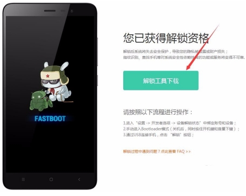 下面便会表明得到开启资质网页页面,点一下“解锁工具免费下载”按键,把解锁工具免费下载到当地,随后缓解压力后运作