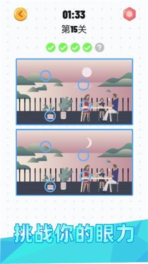 1.天天找茬是一款找茬玩法的休闲游戏。感觉突破关卡很有意思
