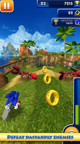 作为一款3D跑酷游戏,《索尼克冲刺》中文版可以让玩家在精致的画面中来到索尼克的世界。通过操作帅气的索尼克或他的朋友,以风的速度,他们通过了许多障碍。喝了妖怪,通过巴兹的考验,享受其中的乐趣!