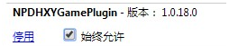 (2)寻找“NPDHXYGamePlugin”项,点一下“开启”并挑选“自始至终容许”,实际操作后結果如图所示