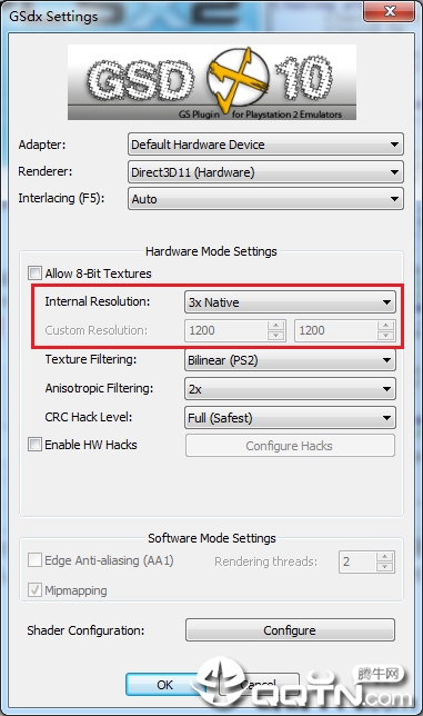 这儿设定为3X3D渲染就是以PS2初始屏幕分辨率的三倍开展3D渲染,说白了画面质量也立刻提高了3倍。