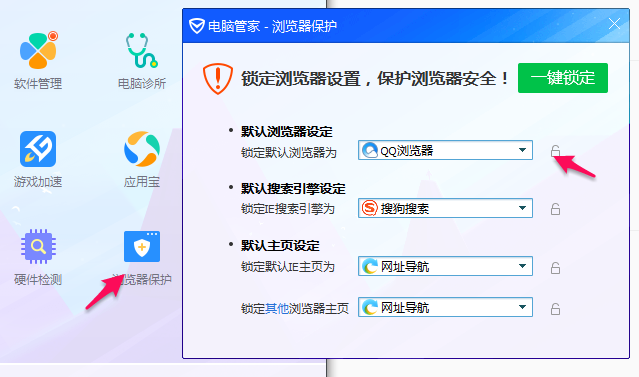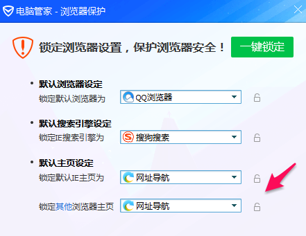(1)开启「莱单」-「设定 」-「基本设定」-「默认浏览器」,点一下「设定默认浏览器并锁住」;