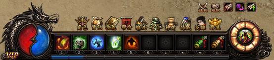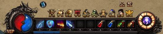 便捷栏中可置放专业技能、药物、回程秘药,游戏玩家可根据键盘快捷键立即应用有关专业技能及物件。