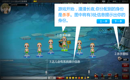 1. 在晚上有一次行凶的管理权限,过半数网络投票(没有一半),每天晚上可灭一个人,凶手要协作哦。(凶手频道栏目)