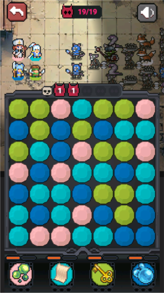 2. 每个字符对应一种颜色。当你消除该颜色的方块时,相应颜色的英雄就会发动技能/攻击。