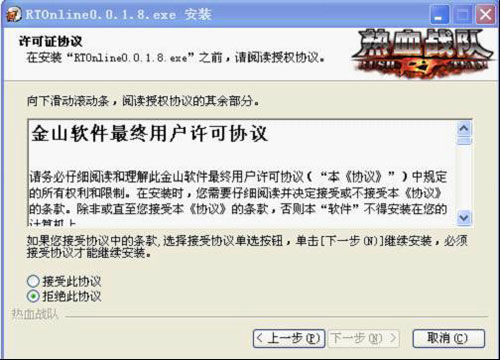 c. 请您访问 完《金山软件最终用户许可协议》,挑选“接纳此协议书”,随后,点一下下一步,如下图: