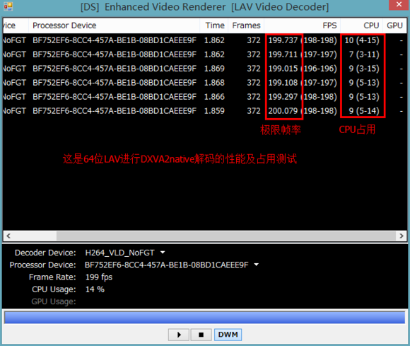 适用 DXVA, CUDA, QuickSync 这些,以至少的資源生产制造最绮丽的主要表现。