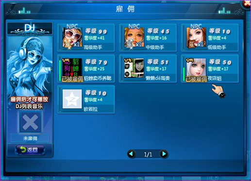 点击游戏下边的聘请标志,能够聘请朋友为DJ、调酒、服务行业、保安人员、领舞来提升舒适感,好 友的级别越越高越舒适感也就越多。每一次聘请使用时间为12小时,到期后必须再次聘请。高级的 游戏玩家那都很火热哦,因此着手务必准、快、狠。还可以根据合同书聘请,最多可聘请两天。