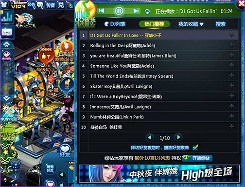 点击游戏左侧的音乐图标,能够选择系统或自身检索喜爱的歌曲做为DJ播放视频(即音乐背景)。歌曲 系统软件是夜店之王的一大特点,非常值得感受。