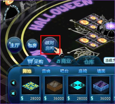 点击“室内装修?狂欢派对屋子”就可以进到到狂欢派对屋子里,这儿能够自定设计风格哦,而且设计风格总是在狂欢派对 表明。