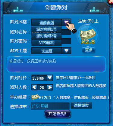 有夜店怎能沒有狂欢派对?在《夜店之王》,游戏玩家能够根据盆友社交圈邀请人[3] 前去参与瘋狂而又时尚潮流的酒吧夜场狂欢派对,第一次拜会朋友可得到精力6点,一次数最多能够雇佣五个朋友哦。自然啦,还能够搜罗同城网俊男美女来一次奇特偶遇。无眠之夜,长沙夜生活之地。真正日常生活的夜里总是会以往,而《夜店之王》始终是无眠之夜,始终都是有星光闪耀的欢乐!