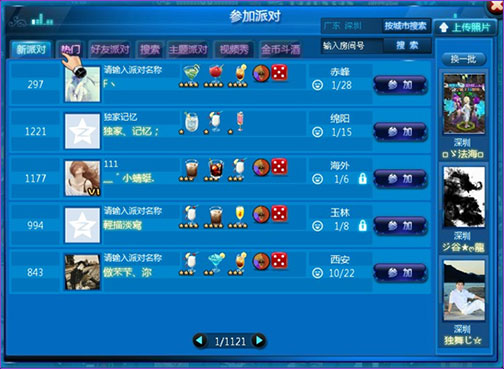 点击游戏右上方的实力派演员对标志,能够进到朋友和系统软件的狂欢派对。参与狂欢派对能够和喜爱的妹子闲聊, 还可以和游戏玩家互动交流(邀约饮酒、舞蹈等),有概率获得狂欢派对会员卡。