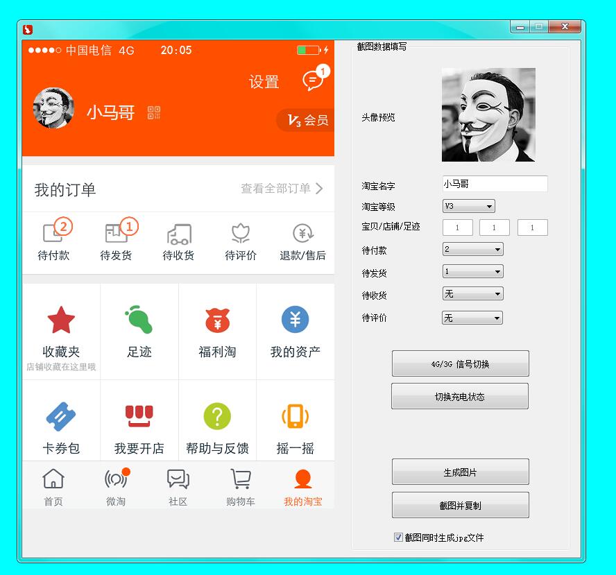 仿淘宝手机客户端用户管理界面图片生成器下载 v1.2 绿色免安装版